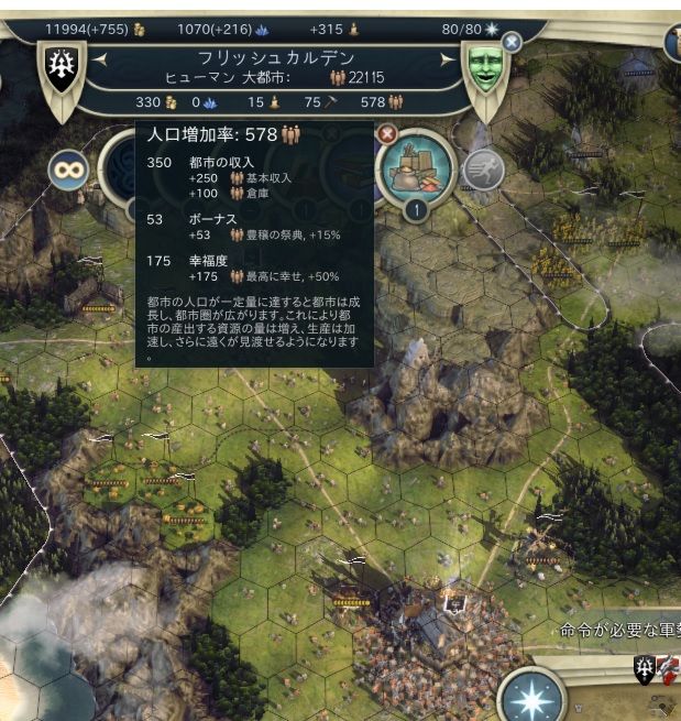 ふと第二都市を見ると、以前あった人口増加率ペナルティがなくなっていた。