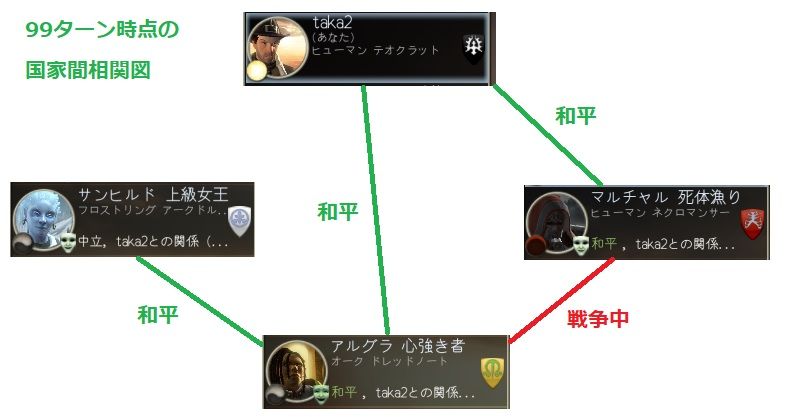 ともあれ、マルチャルさん記念すべき100ターン目に滅亡!