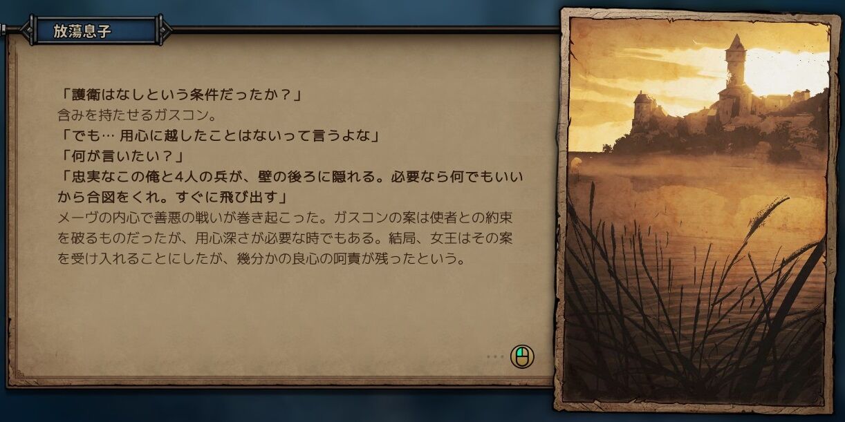 文章の途中からガスコン視点になる語り部。