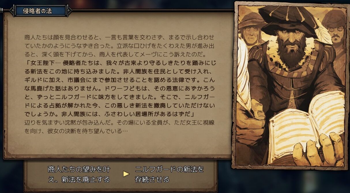 ドワーフには多大な借りがあるので、ここはニルフガードの法を存続させることにする。