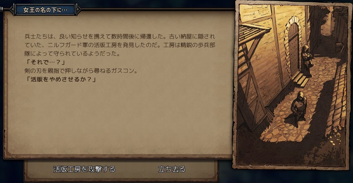 ニルフガードの活版工房へ襲撃をかける。