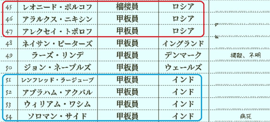しかしこうやって見ると(今更だけど)本当に多国籍船だなあ。