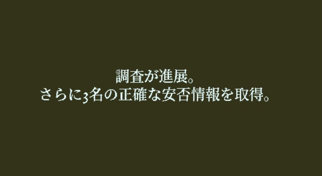 3人の安否情報が確定するたびに進展するシステムで、これが二回目。