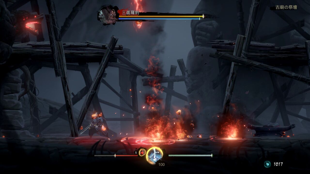 変な手裏剣みたいの投げてくるのと、炎の柱で攻撃してくる面倒な難敵である。