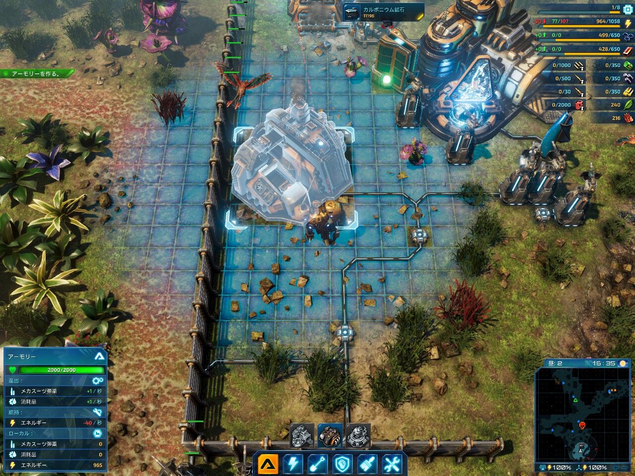 その後、マップ北東に移動し、アイロニウム鉱床の上に工場を作り、