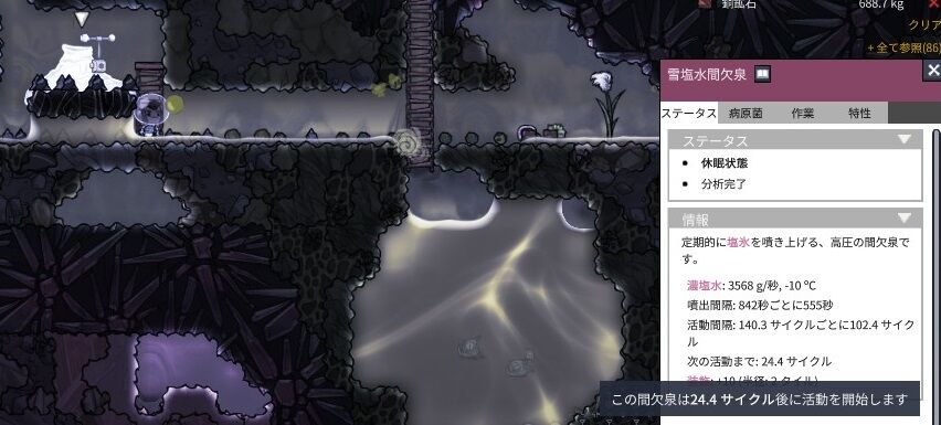 104サイクルにて、雪塩水間欠泉を発掘! これは……どうなんだ?(困惑)
