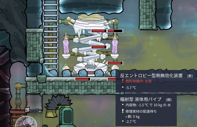 ちなみに、装置に水素入れる前なので、単に寒冷バイオームで冷えすぎた結果である。