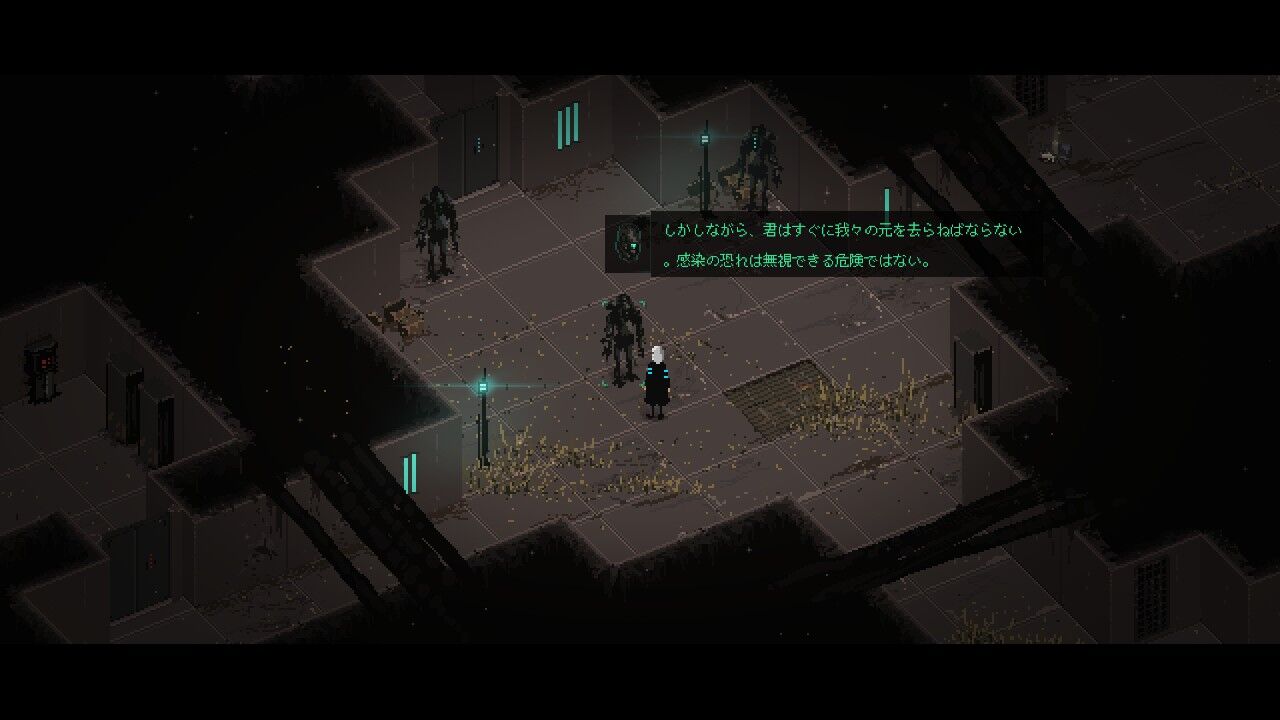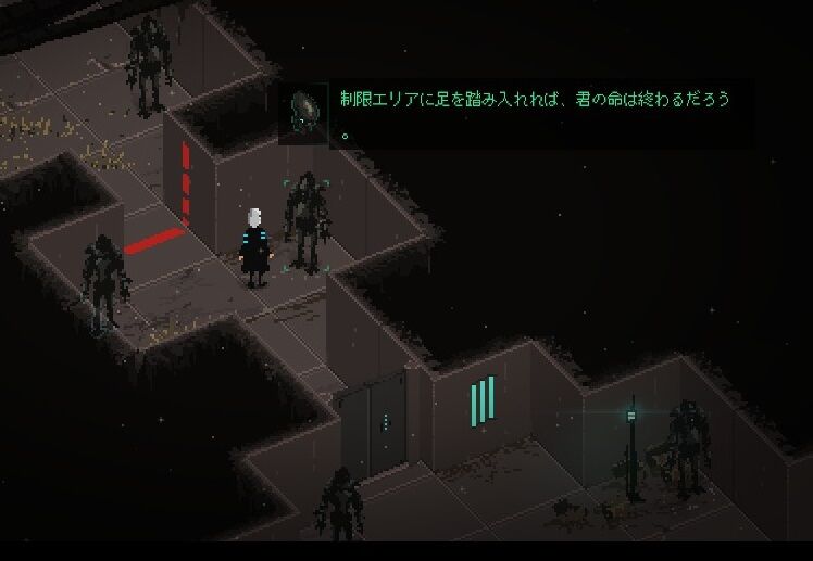 まっすぐ進むと、機械兵から中島みゆきの「ファイト!」みたいなリズムで警告を受ける。