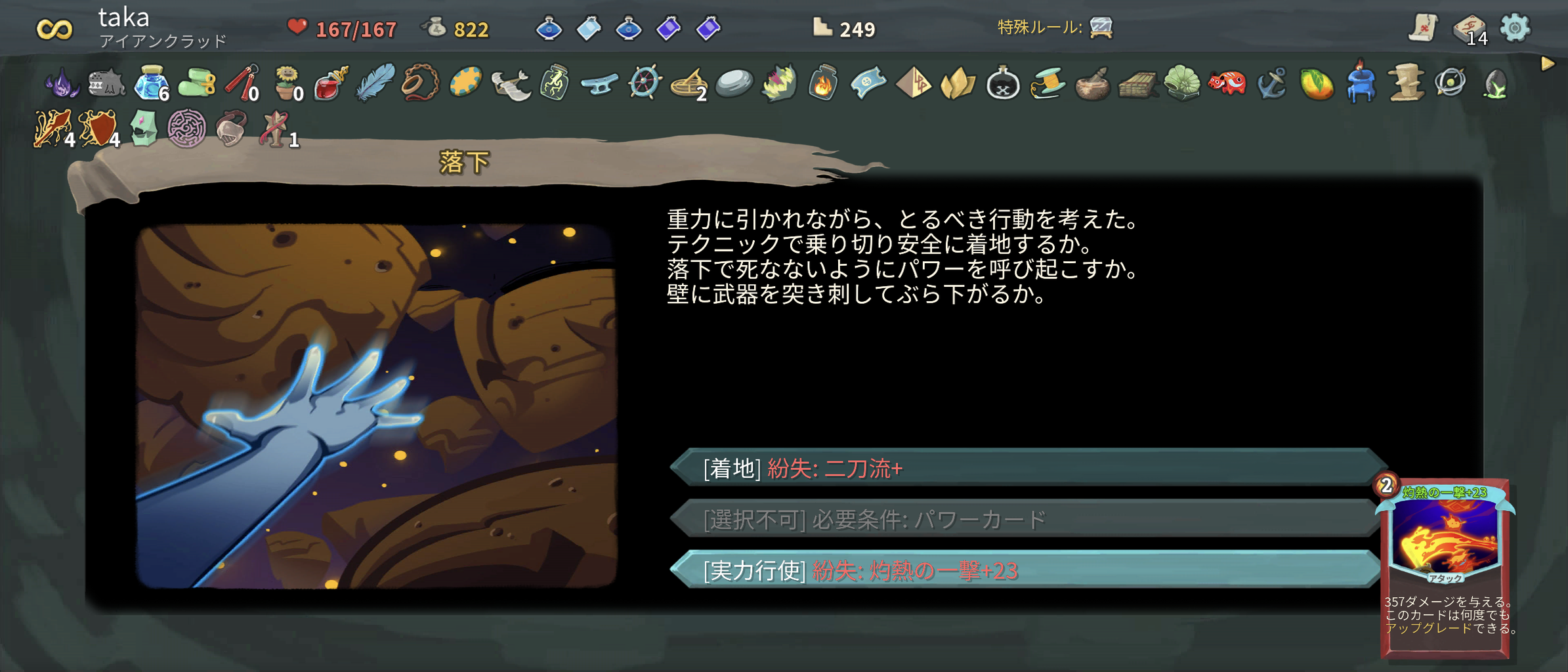 ちなみに周回はアイアンクラッドで灼熱の一撃を強化しまくってワンパンで倒すという
