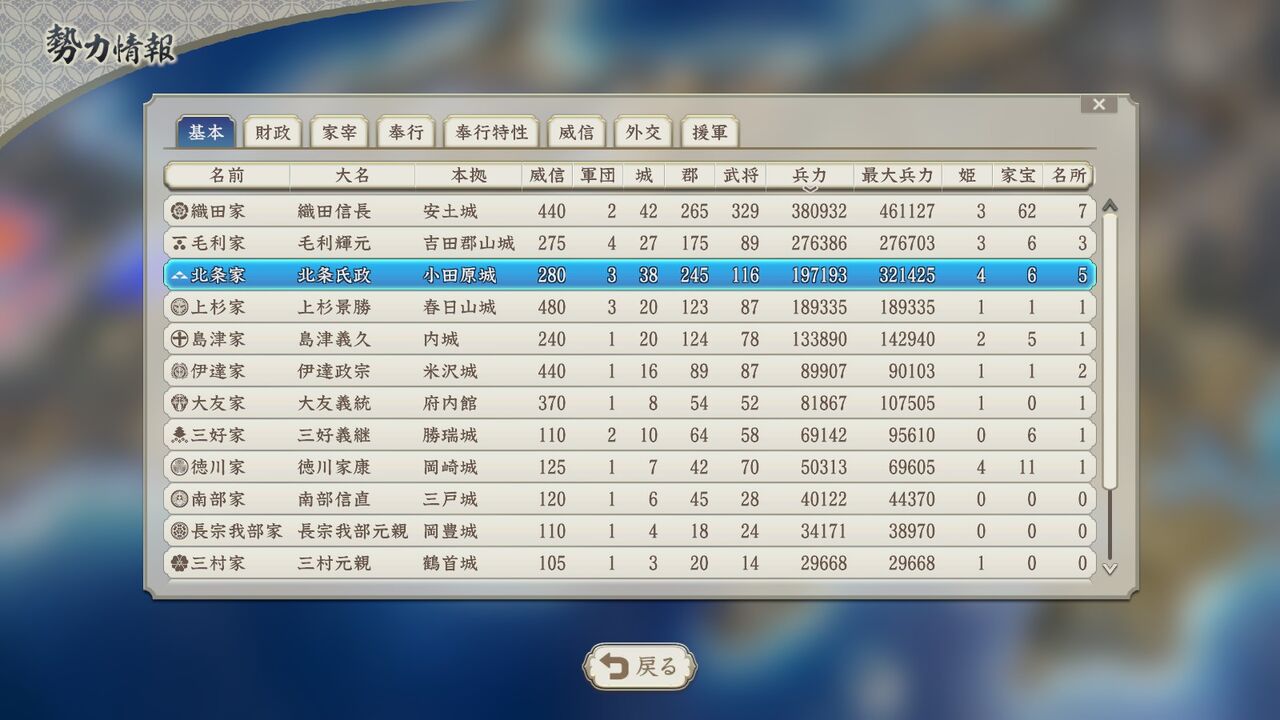 当方が最強勢力なのは当然だが、北条侮れないなあ……。真っ向勝負はしんどいぜ。