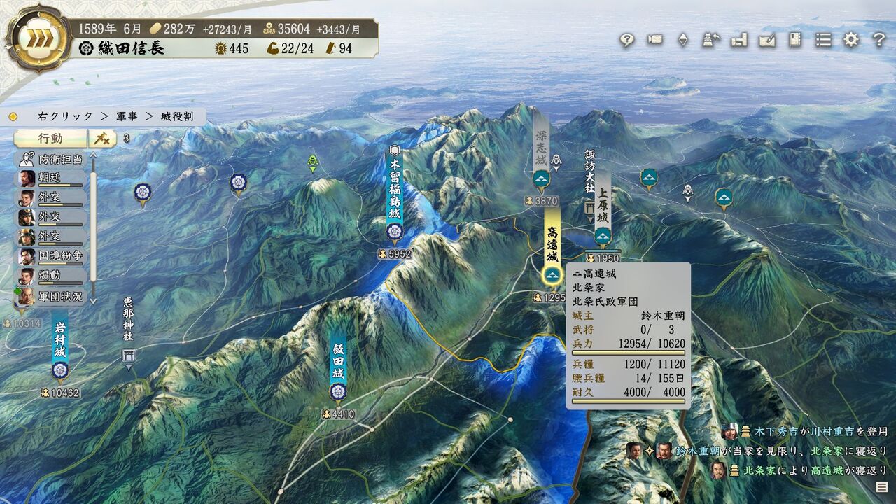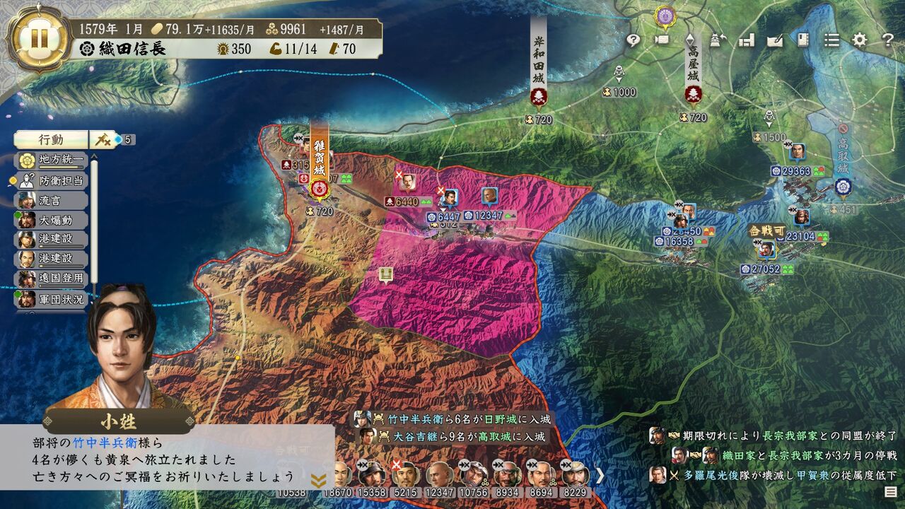 そんなこんなしつつ、ふとマップを見たら武田がめちゃくちゃ弱体化していて草が生えた。