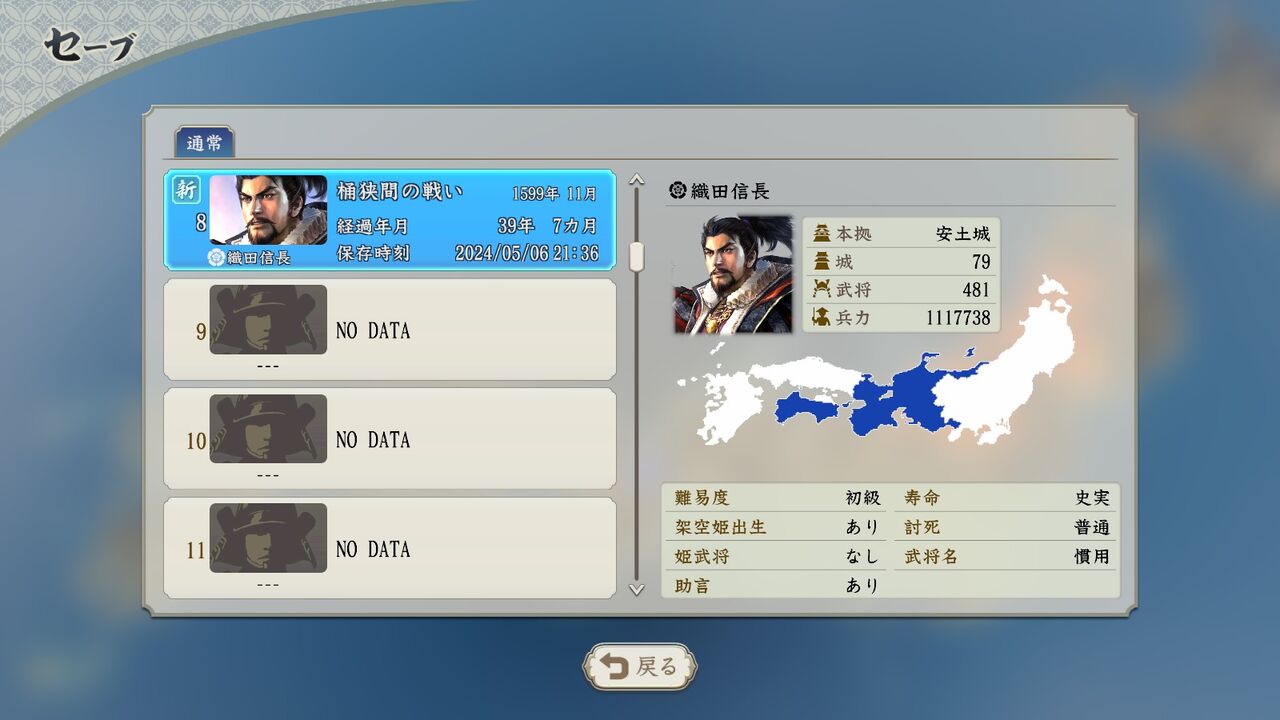 果たして信長存命でクリアまで行けるのか? 死んだら誰に継がせようか。