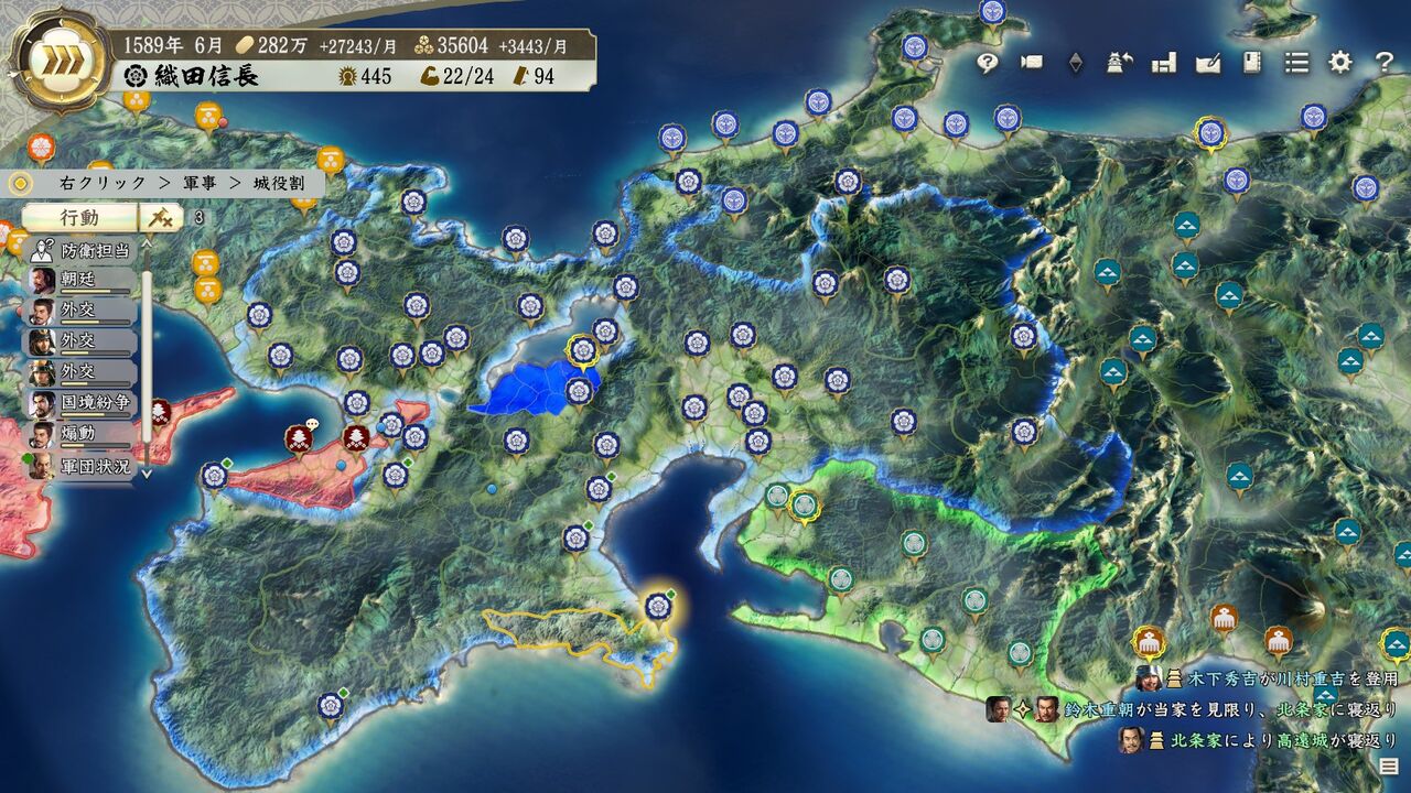 チンタラしてたら案の定というか、北条がガンガン拡大してきて怖くなってきた。