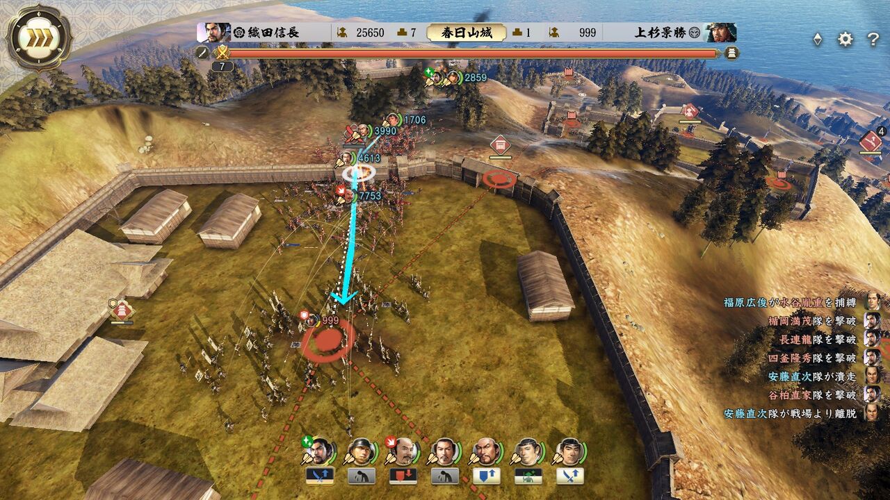 ちょっと時間置いて春日山城に攻め込んだら攻城戦が発生しなくて、普通に陥とせてしまった。