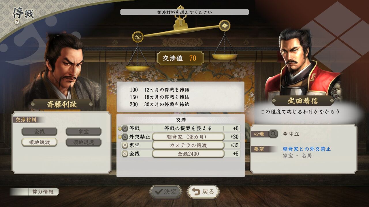 停戦交渉やら条件交渉やらのシステムを学ぶ。