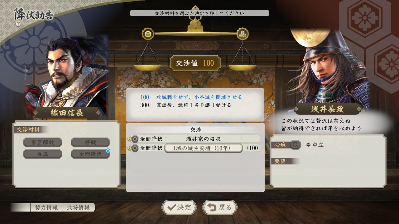 まあ無理矢理戦っても長政死ぬだけでいいことないし、普通に部下にしてやったほうが良かろう。