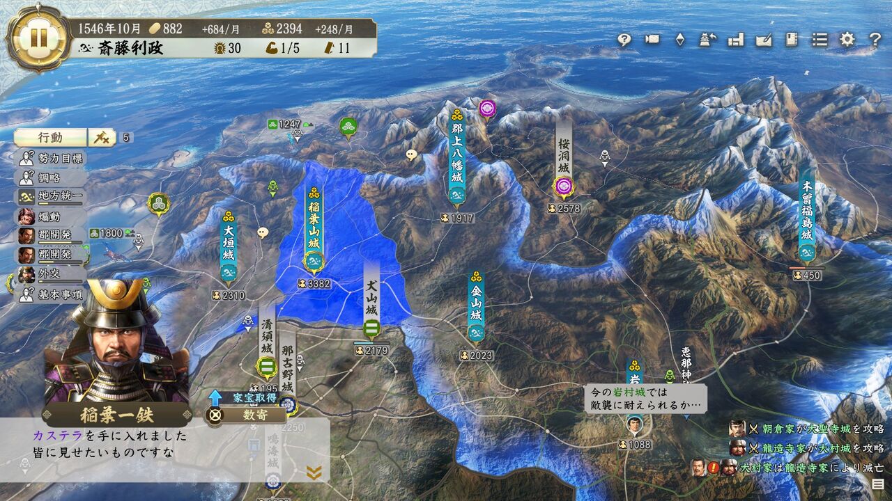 東海を制圧しました。東海一の弓取りは俺だ。千秋万歳!