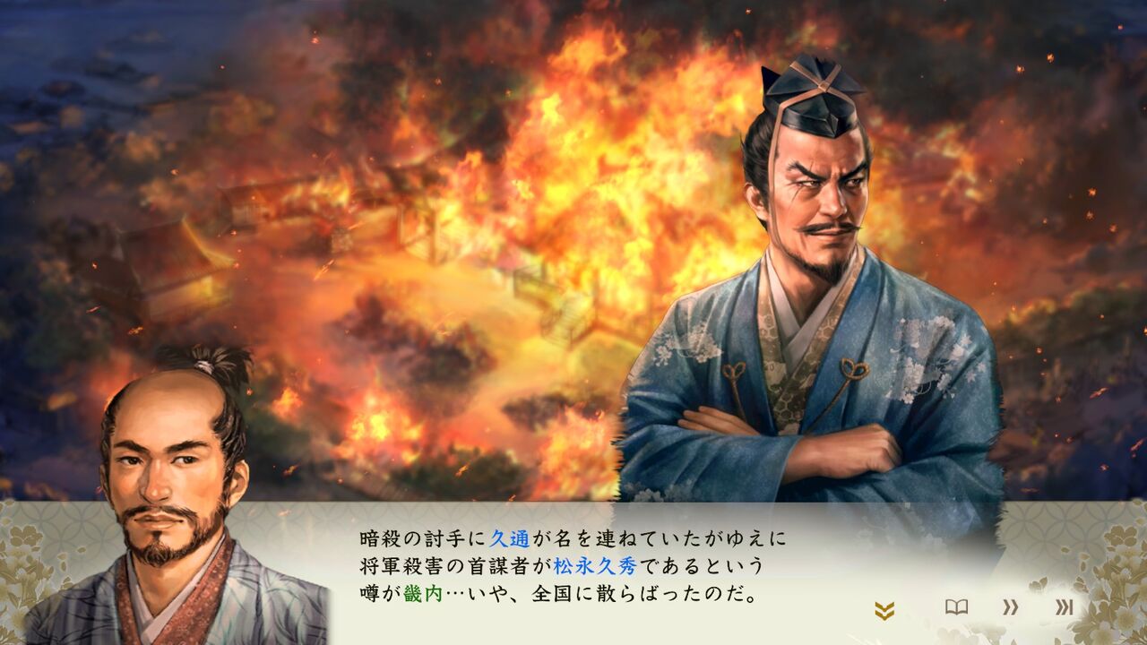 松永久秀忠臣説をイベントシーンにガッツリ組み込んでいた。さすがは最新作である。