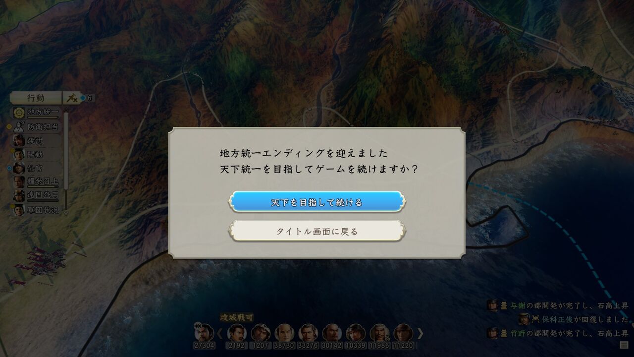 これでいったん「地方統一エンディング」らしい。