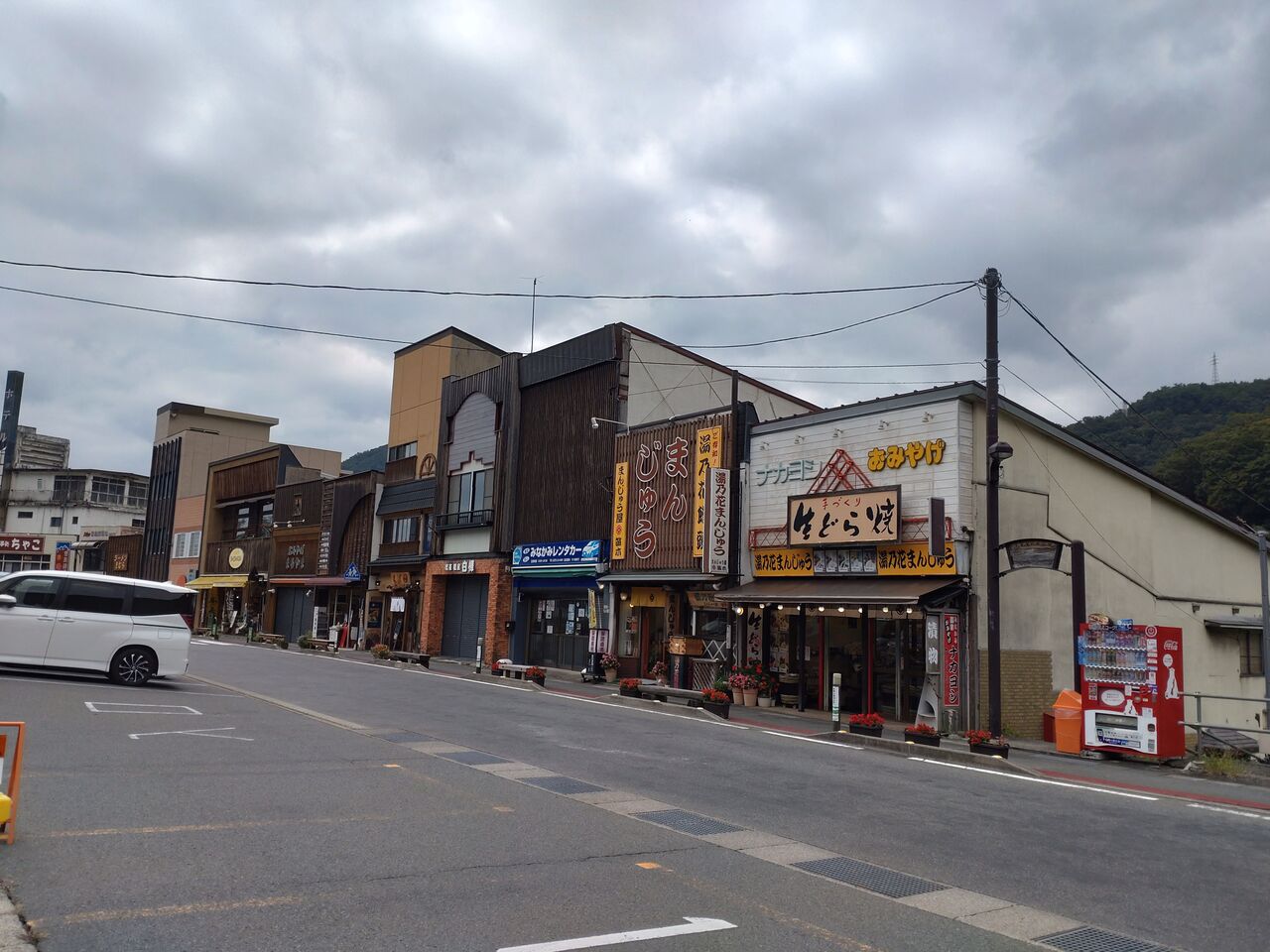 大福やどら焼きを推しているおみやげ屋さんが並んでいる。