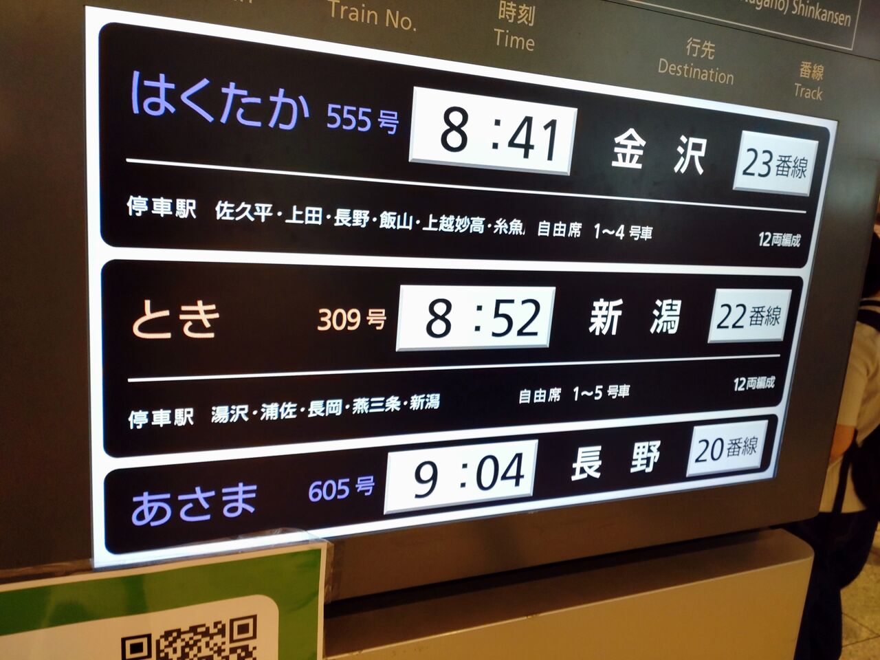 今更ながら「新潟行き」表示にちょっと不安がこみ上げる。